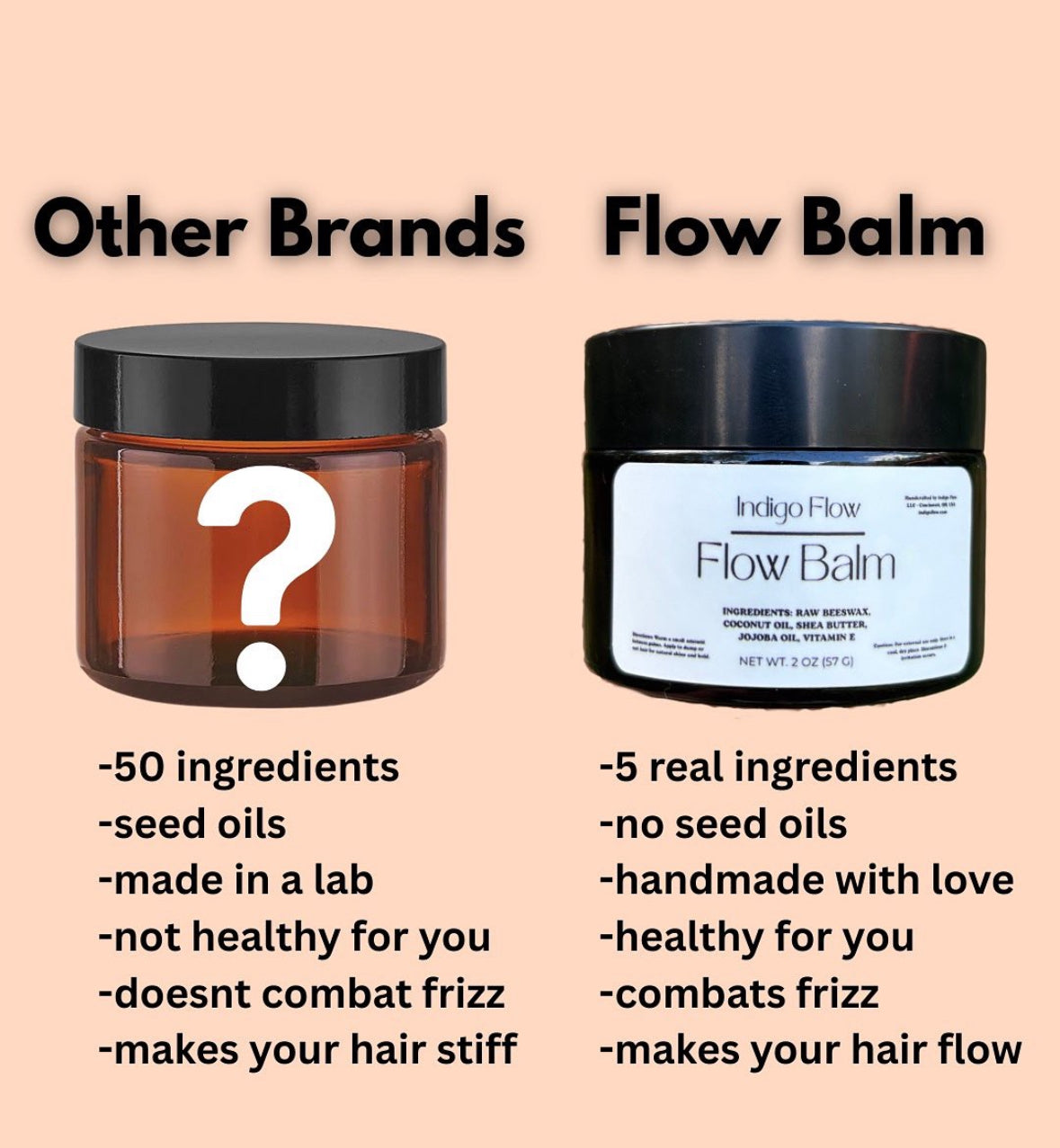 Other brands, even those that claim "natural" have a TON of ingredients, many not even being NATURAL. I tried them. They failed me. That's why I created the solution for frizz, dryness, and style WITHOUT compensating your health because I care about you! Flow Balm is not only superior in terms of results but in terms of health as well